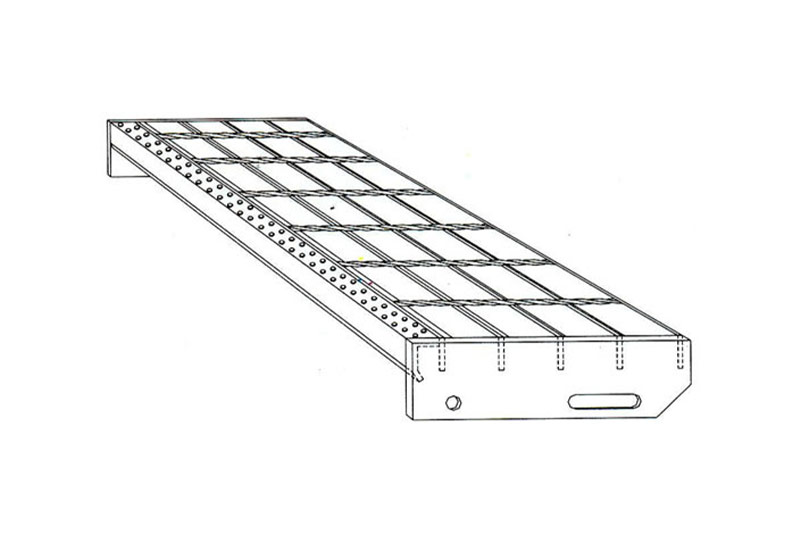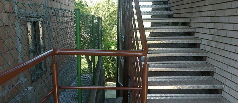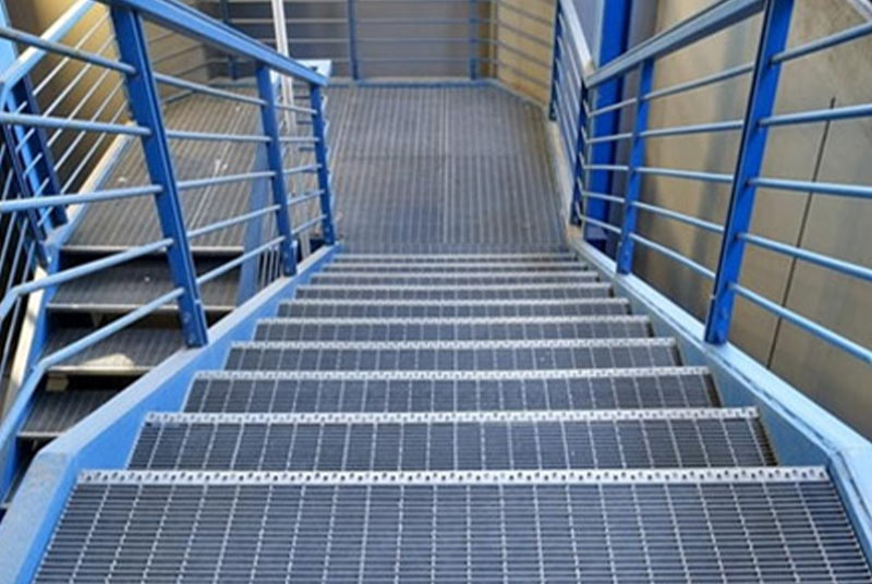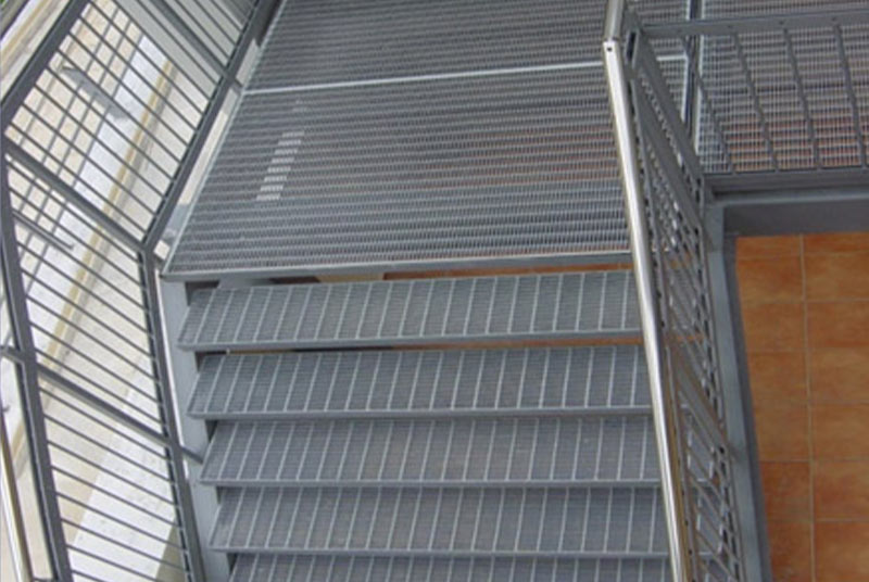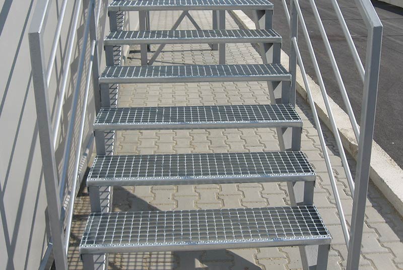 Stepenici su napravljeni od svih tipova rešetki i konstruisani su sa specijalnim bočnim stranama od trake dimenzija 70×3 mm i protiv-kliznim L profilom.